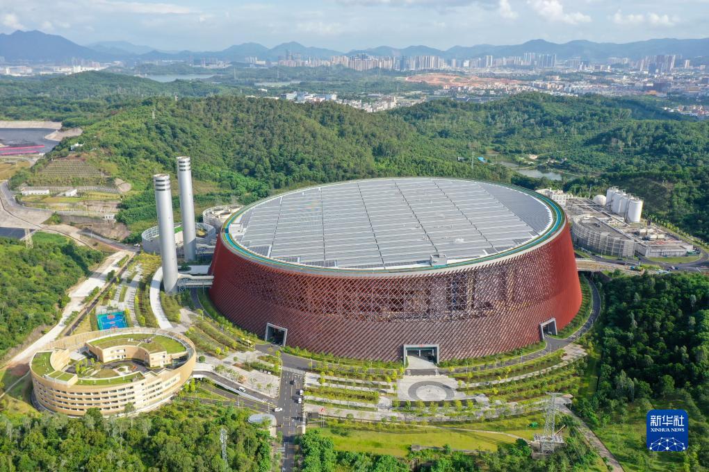 深圳龍崗能源生態(tài)園占地面積約54萬(wàn)平方米,日處理生活垃圾5000噸,是目前國內單體建設規模最大的超大型生活垃圾焚燒處理設施,園區內配套建設科普教育基地及餐飲服務(wù),未來(lái)將對市民開(kāi)放(無(wú)人機照片,8月8日攝)。