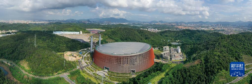 深圳龍崗能源生態(tài)園占地面積約54萬(wàn)平方米,日處理生活垃圾5000噸,是目前國內單體建設規模最大的超大型生活垃圾焚燒處理設施,園區內配套建設科普教育基地及餐飲服務(wù),未來(lái)將對市民開(kāi)放(無(wú)人機全景照片,8月8日攝)。