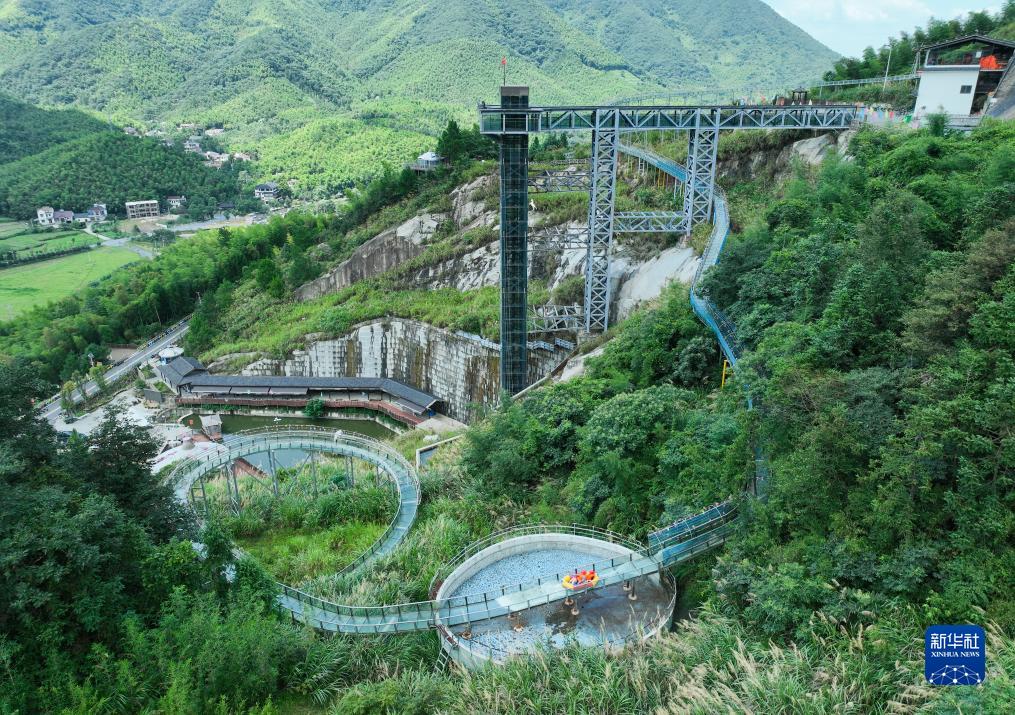 8月3日,游客在安吉縣鄣吳鎮利用廢棄礦山改建的漂流點(diǎn)體驗空中漂流。