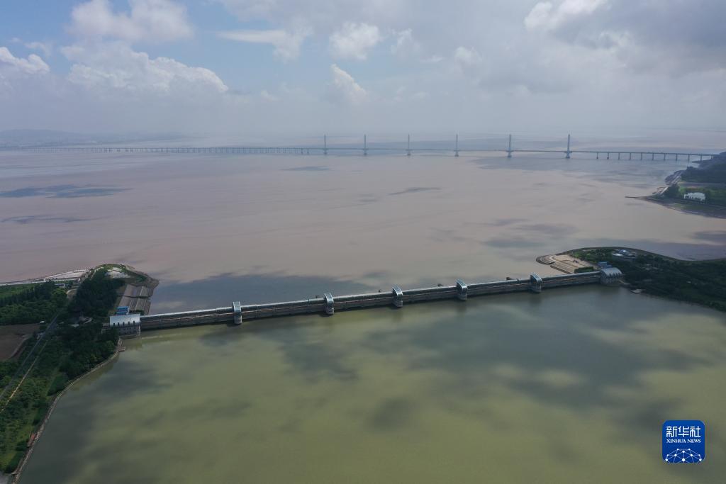 曹娥江大閘是我國強涌潮河口地區第一大閘,浙東水資源配置重要樞紐工程(8月4日攝,無(wú)人機照片)。