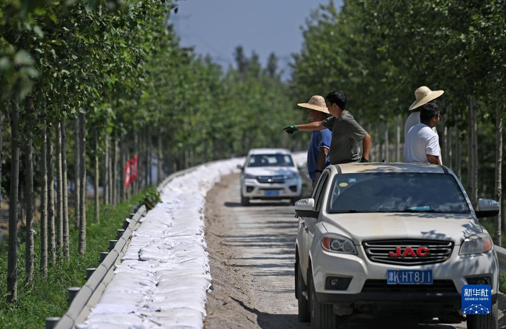 8月15日,應急搶險隊在天津市靜海區臺頭鎮清北地區北圍埝上巡護排查。