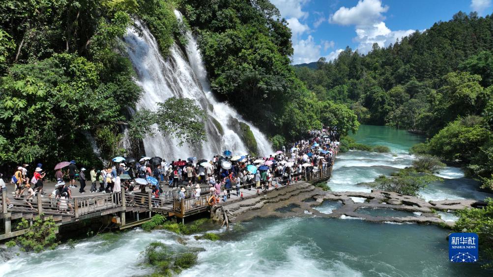 日前,前往貴州省荔波小七孔風(fēng)景區游玩的游客激增,景區各部門(mén)通力合作,服務(wù)游客,每天迎客超過(guò)6.2萬(wàn)人次。