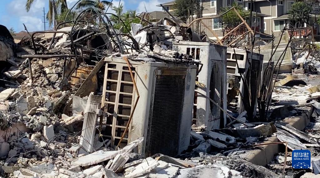 這是8月14日在美國夏威夷州毛伊島拉海納拍攝的野火燒毀的殘骸。