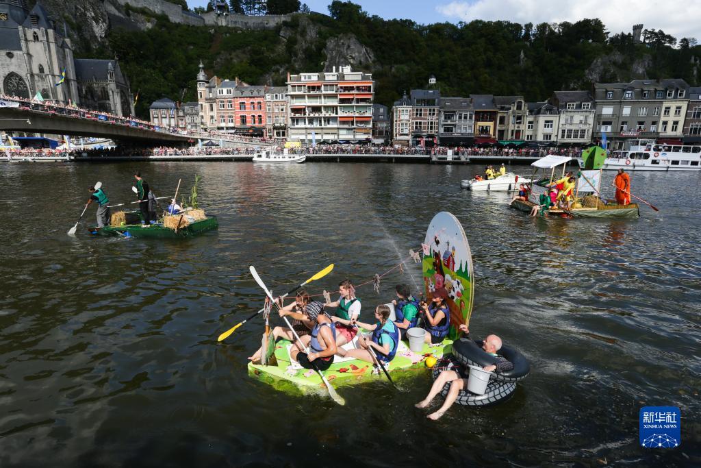當日,“浴缸劃船節”在比利時(shí)迪南舉行。該活動(dòng)始于1982年,已成為比利時(shí)熱鬧的夏季節慶活動(dòng)之一。今年的“浴缸劃船節”主題為“默茲河上的農場(chǎng)”,參加者圍繞浴缸打造稀奇古怪的船只,比拼設計創(chuàng )意及現場(chǎng)表演。