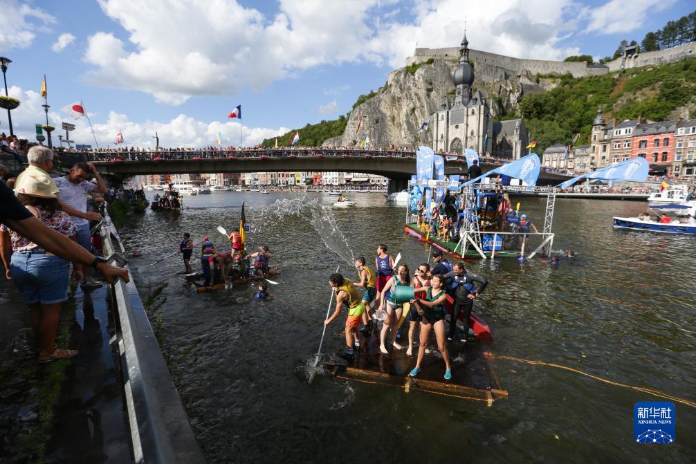 當日,“浴缸劃船節”在比利時(shí)迪南舉行。該活動(dòng)始于1982年,已成為比利時(shí)熱鬧的夏季節慶活動(dòng)之一。今年的“浴缸劃船節”主題為“默茲河上的農場(chǎng)”,參加者圍繞浴缸打造稀奇古怪的船只,比拼設計創(chuàng )意及現場(chǎng)表演。