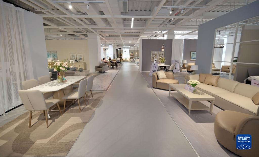 8月15日,在江西省贛州市南康區美克美家美克數創(chuàng )(贛州)家居智造有限公司,展廳里展示各種家具。