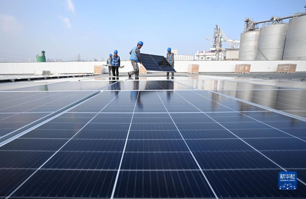 連日來(lái),在河北省唐山市海港經(jīng)濟開(kāi)發(fā)區各企業(yè)的廠(chǎng)房屋頂,工人搶抓工期,安裝光伏發(fā)電板,現場(chǎng)一片忙碌景象。
