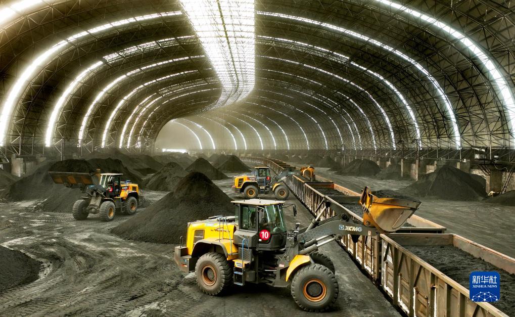8月16日,在中聯(lián)鐵運(井陘)儲備基地環(huán)保大棚,機械設備進(jìn)行煤炭裝車(chē)作業(yè)。