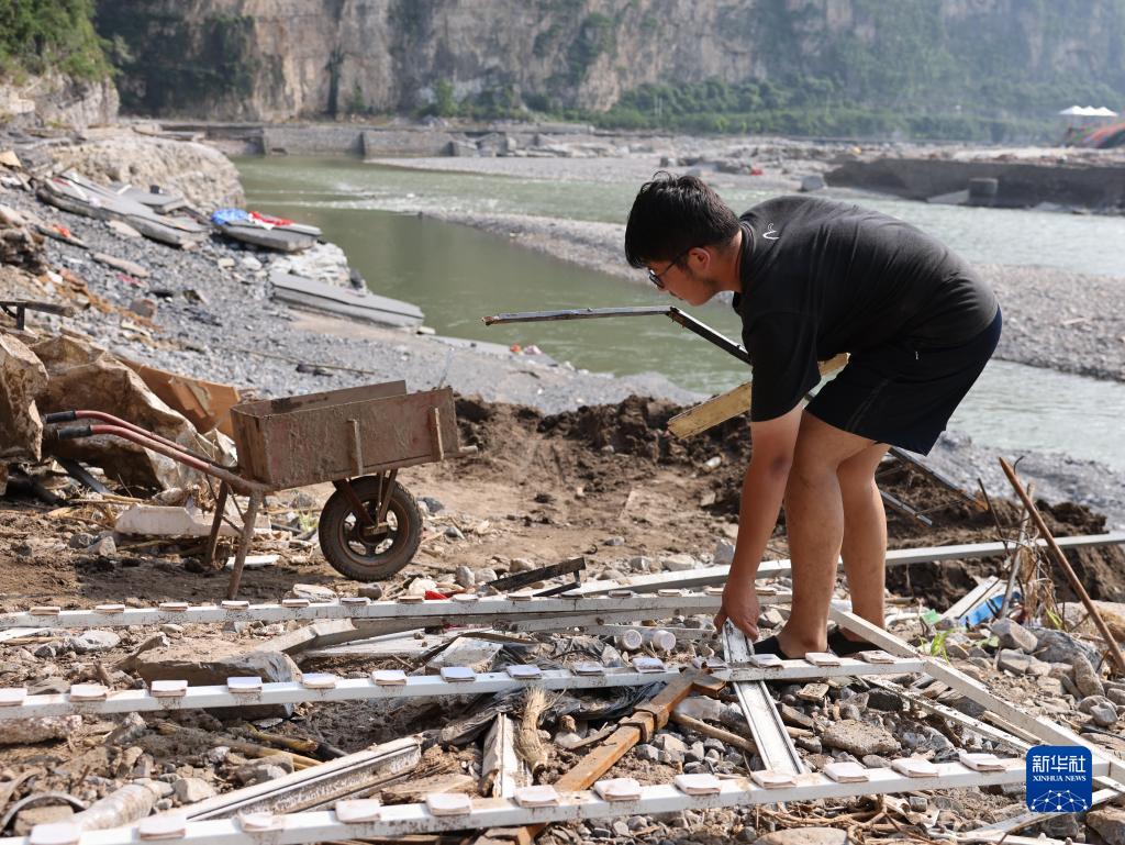8月15日,河北淶水縣三坡鎮都衙村四背峪村民小組的村民在清理家中雜物。