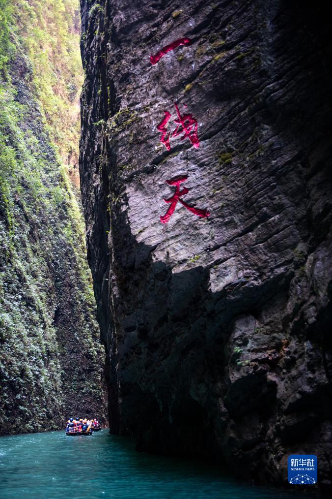 湖北省恩施土家族苗族自治州鶴峰縣森林覆蓋率高,空氣清新,氣候宜人。位于該縣容美鎮的屏山峽谷,全長(cháng)約18公里,峰巒與河谷高差達千米,最窄處僅五尺,形成罕見(jiàn)的峽谷和地縫特色風(fēng)光,碧水、輕舟與絕壁、森林相映成趣,每年吸引眾多海內外游客前來(lái)觀(guān)光。