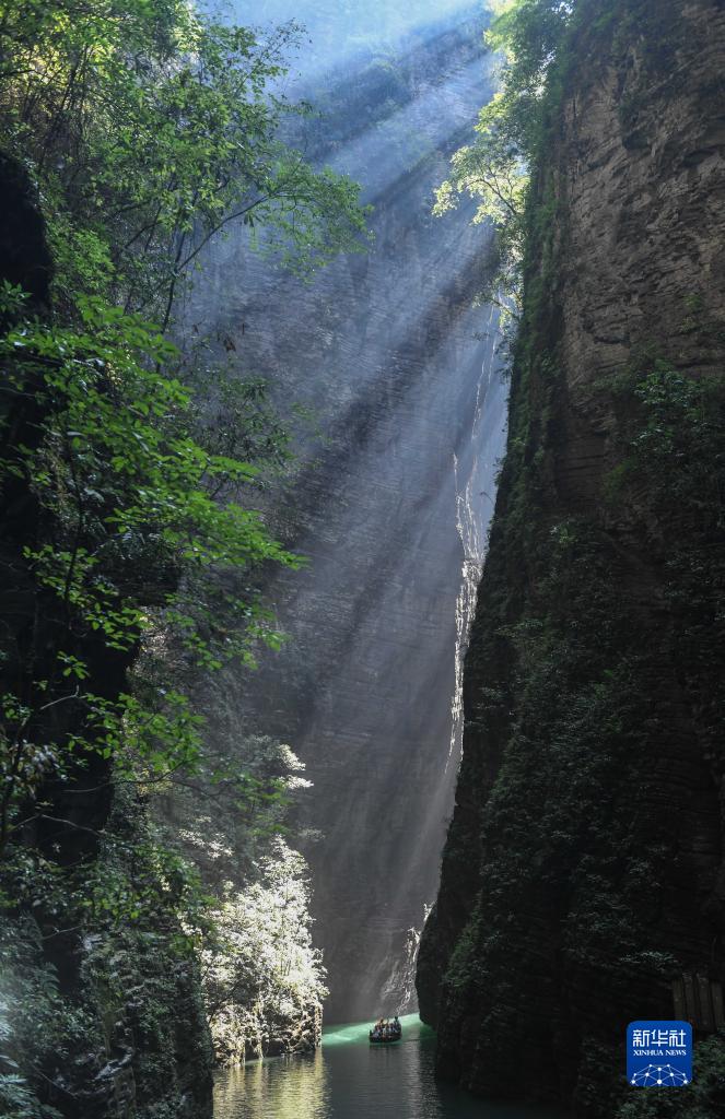湖北省恩施土家族苗族自治州鶴峰縣森林覆蓋率高,空氣清新,氣候宜人。位于該縣容美鎮的屏山峽谷,全長(cháng)約18公里,峰巒與河谷高差達千米,最窄處僅五尺,形成罕見(jiàn)的峽谷和地縫特色風(fēng)光,碧水、輕舟與絕壁、森林相映成趣,每年吸引眾多海內外游客前來(lái)觀(guān)光。