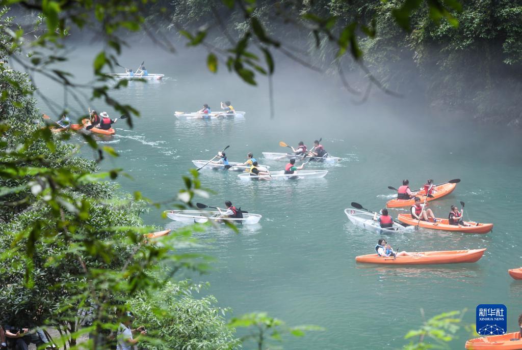 8月16日,游客在屏山峽谷劃船。