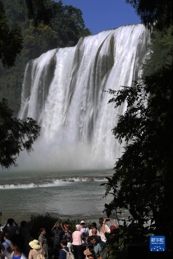 初秋時(shí)節,位于貴州省安順市的黃果樹(shù)瀑布景區進(jìn)入一年中的最佳觀(guān)賞期。大瀑布奔騰而下、氣勢磅礴,前來(lái)觀(guān)賞游玩的游客絡(luò )繹不絕。