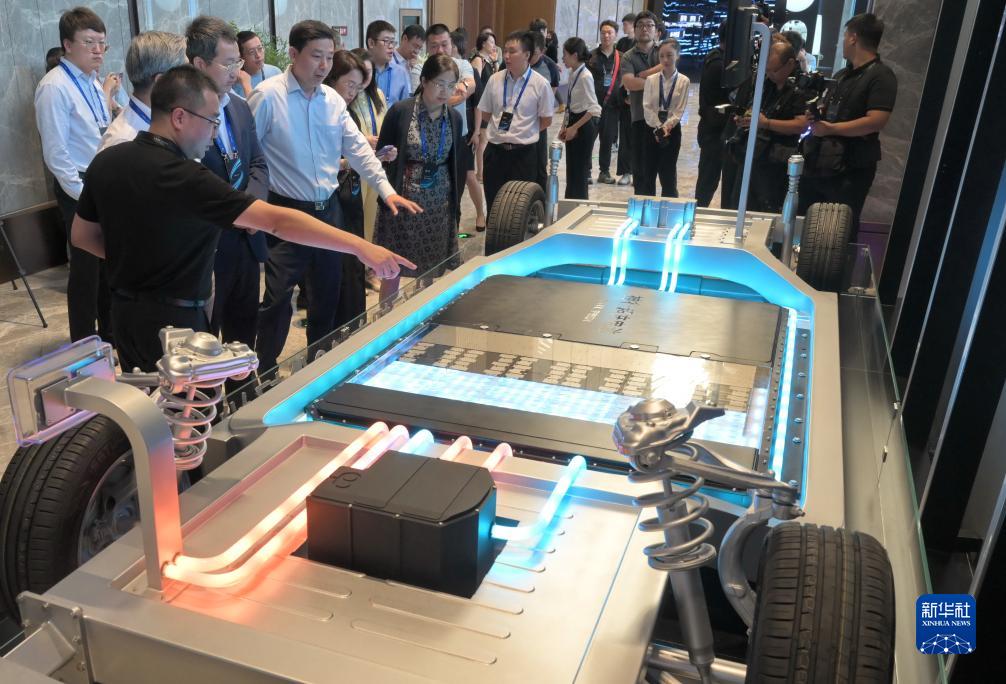 8月16日,參觀(guān)者在觀(guān)看寧德時(shí)代發(fā)布的神行超充電池。