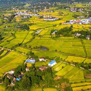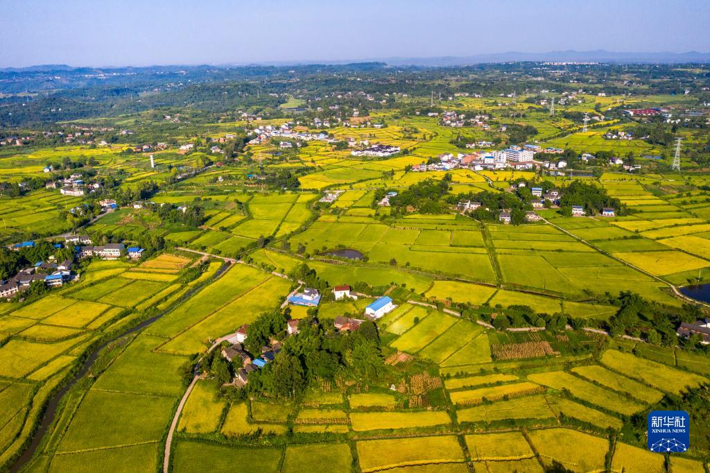 四川省廣安市廣安區大安鎮南橋村水稻泛黃成熟(無(wú)人機照片,8月15日攝)。