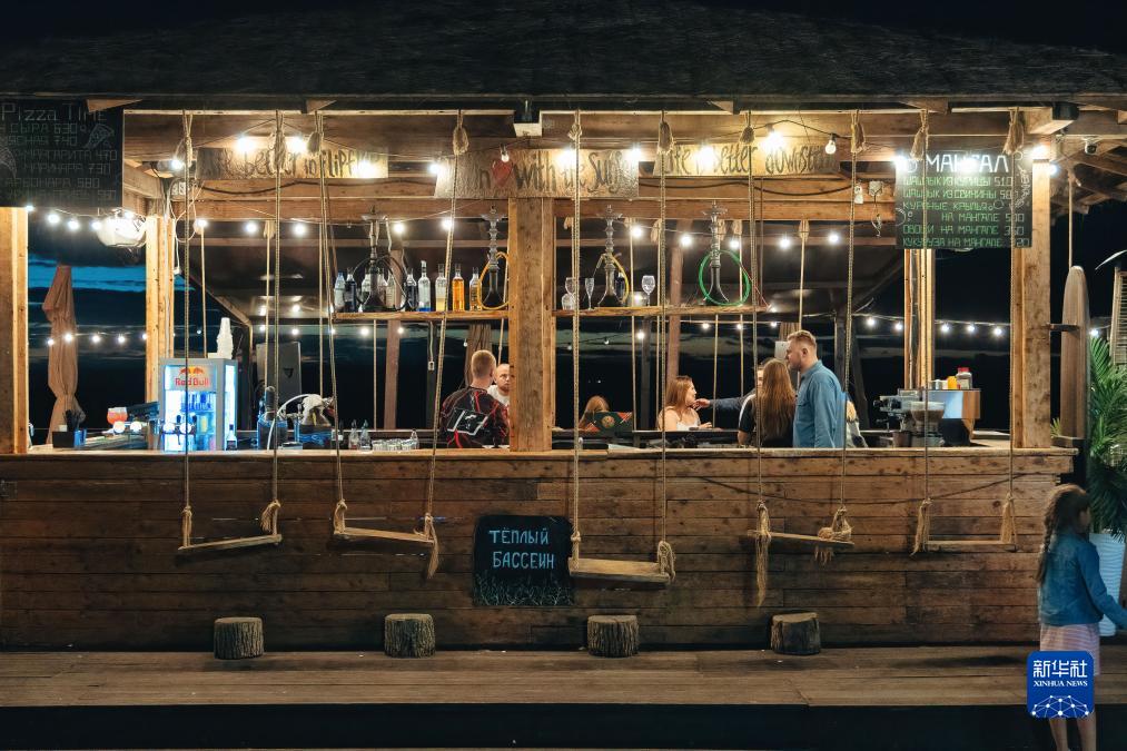 俄羅斯遠東城市符拉迪沃斯托克三面環(huán)海,旅游業(yè)較發(fā)達,每當夜幕降臨時(shí),人們來(lái)到阿穆?tīng)枮车暮_厞蕵?lè )休閑。