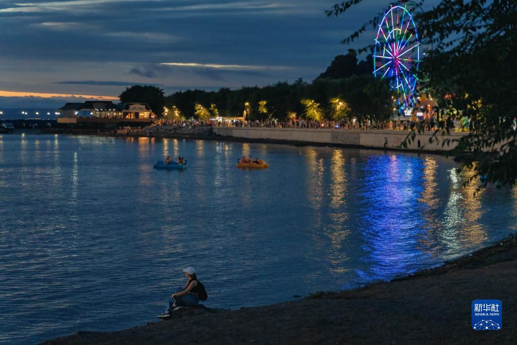 俄羅斯遠東城市符拉迪沃斯托克三面環(huán)海,旅游業(yè)較發(fā)達,每當夜幕降臨時(shí),人們來(lái)到阿穆?tīng)枮车暮_厞蕵?lè )休閑。
