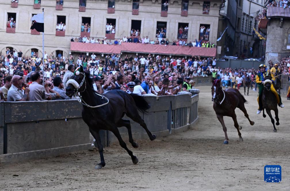 當日,錫耶納賽馬節在意大利托斯卡納大區古城錫耶納市中心的田野廣場(chǎng)舉行,吸引了眾多觀(guān)眾前來(lái)觀(guān)看。錫耶納賽馬節是世界聞名的意大利傳統民間活動(dòng),始于1656年,每年7月2日和8月16日舉行兩次。