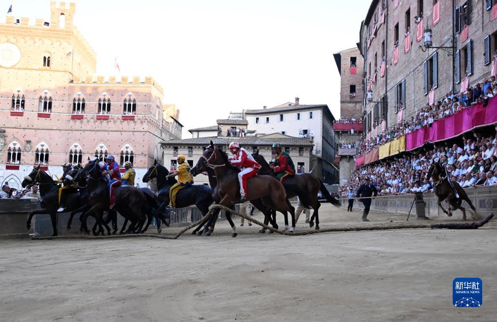 當日,錫耶納賽馬節在意大利托斯卡納大區古城錫耶納市中心的田野廣場(chǎng)舉行,吸引了眾多觀(guān)眾前來(lái)觀(guān)看。錫耶納賽馬節是世界聞名的意大利傳統民間活動(dòng),始于1656年,每年7月2日和8月16日舉行兩次。