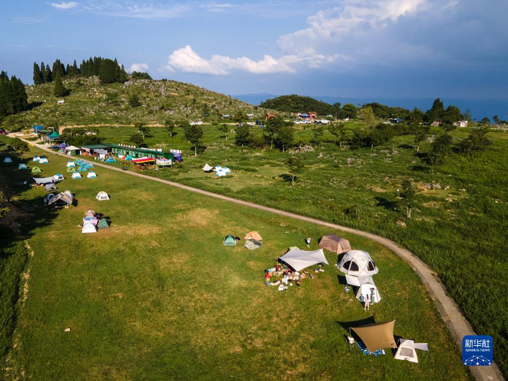 這是8月16日在重慶市石柱土家族自治縣魚(yú)池鎮拍攝的千野草場(chǎng)景區露營(yíng)基地(無(wú)人機照片)。