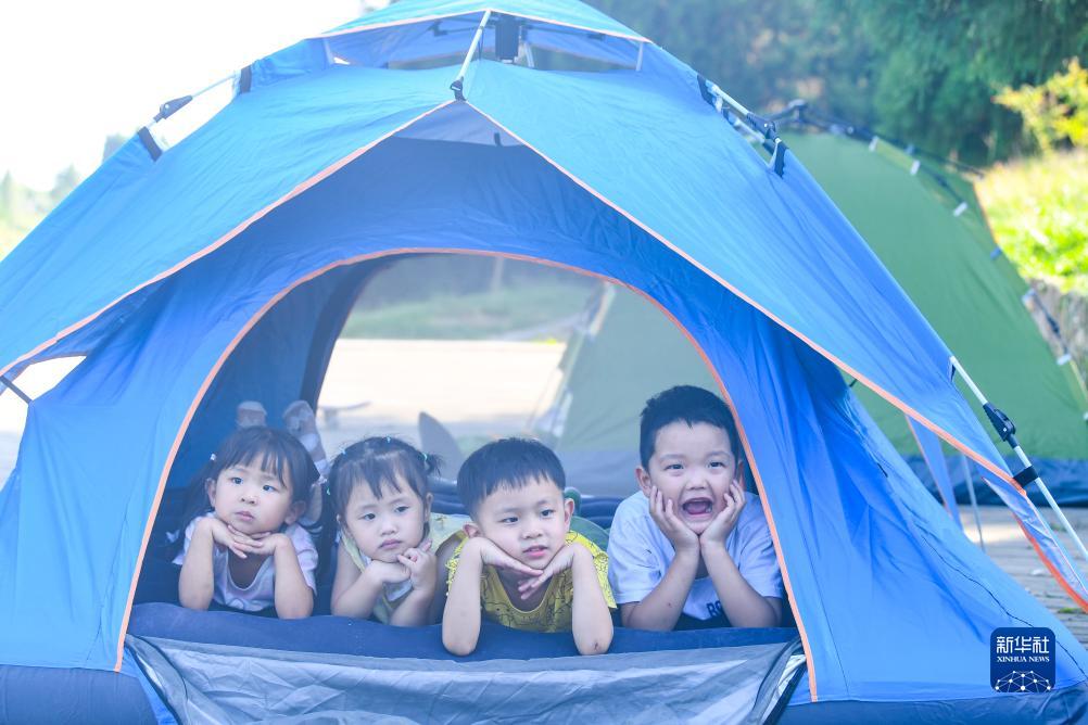 8月16日,小朋友在重慶市石柱土家族自治縣魚(yú)池鎮千野草場(chǎng)景區露營(yíng)基地玩耍。