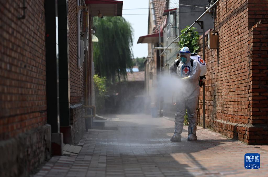 8月17日,工作人員在天津市靜海區臺頭鎮進(jìn)行消殺作業(yè)。