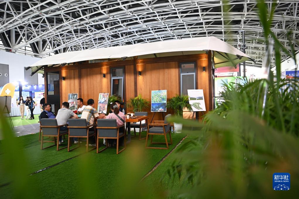 8月17日,參觀(guān)者在文旅融合館了解戶(hù)外品牌。