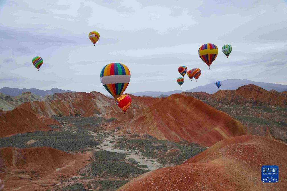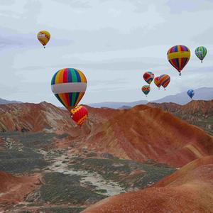 甘肅張掖:熱氣球飛舞七彩丹霞