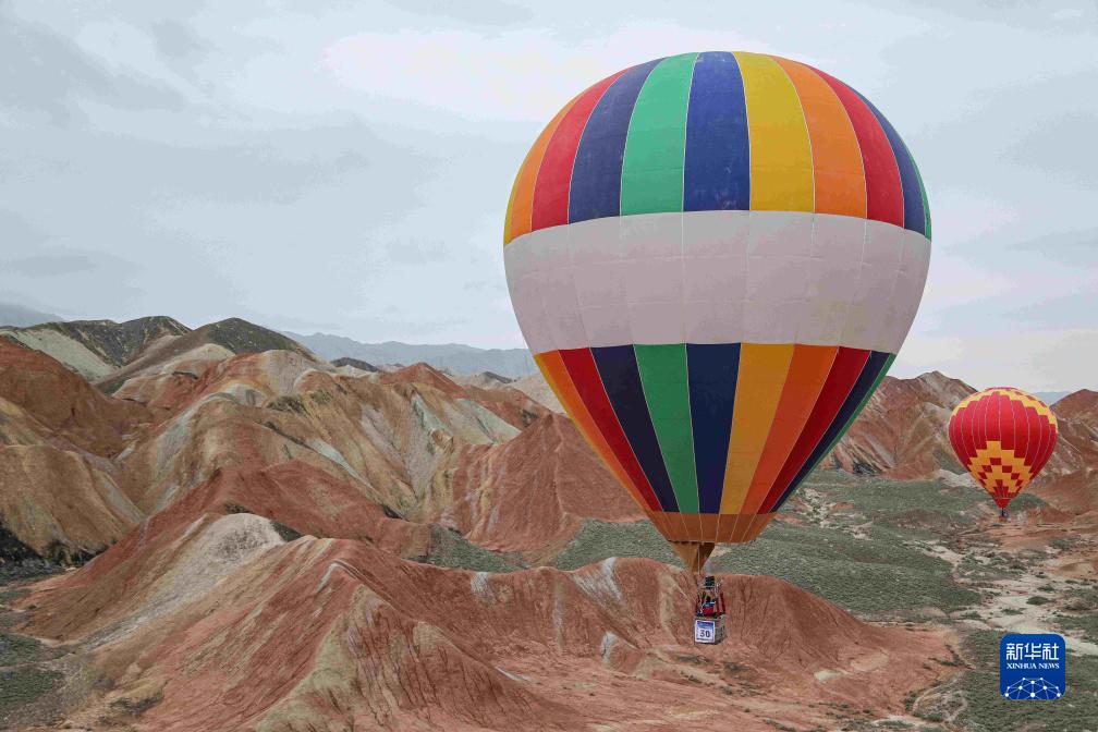 甘肅張掖:熱氣球飛舞七彩丹霞
