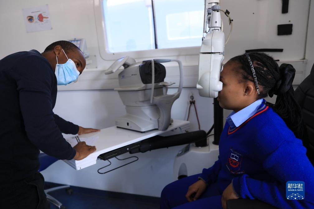 8月10日,在南非德阿鎮一所學(xué)校,學(xué)生在醫療大巴車(chē)上接受檢查。