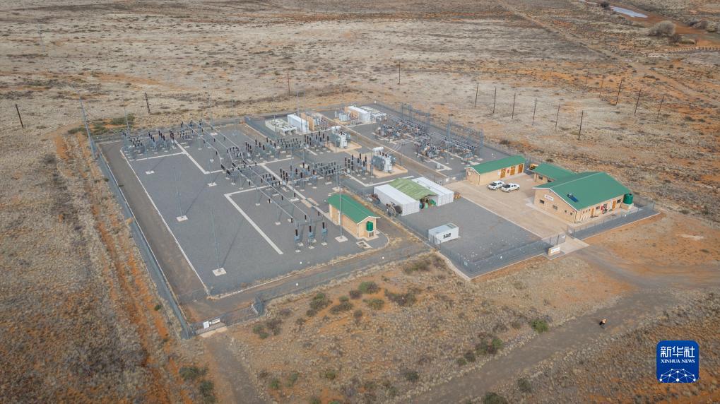 這是7月25日在南非北開(kāi)普省德阿鎮拍攝的龍源南非公司德阿風(fēng)電項目設備。