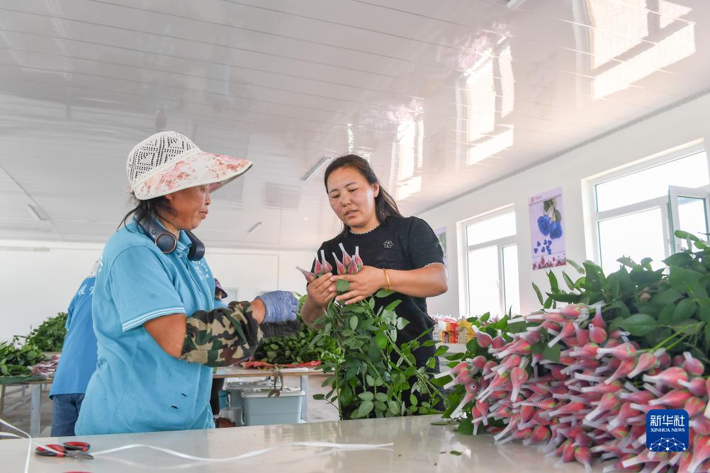臨近七夕,位于吉林省德惠市朱城子鎮沿河村的程雪家庭農場(chǎng)玫瑰大棚內一派繁忙景象。負責人楊雪帶領(lǐng)村民關(guān)注花朵長(cháng)勢,計算著(zhù)花期,適時(shí)進(jìn)行采摘。