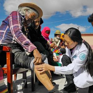 當日,西藏阜康腫瘤醫院的康復理療師來(lái)到海拔4000余米的阿里地區措勤縣曲洛鄉,聯(lián)合當地衛生院的醫生為當地牧民義診。