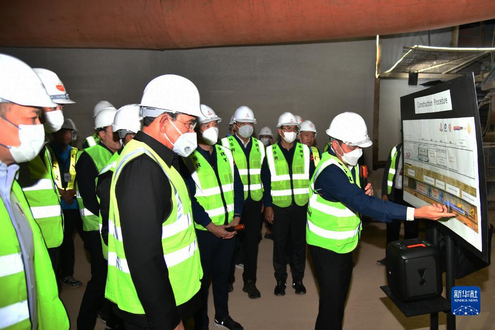 8月17日,泰國總理巴育(中)在沙拉武里府視察中泰鐵路施工段。