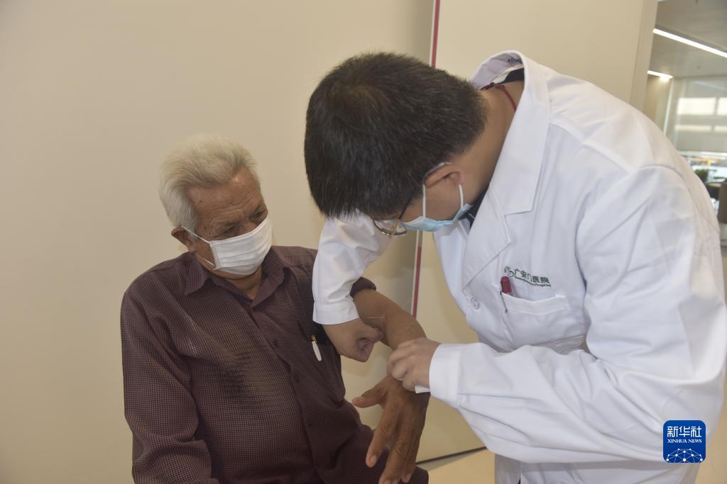 8月18日,在柬埔寨首都金邊的考斯瑪中柬友誼醫院,援柬中醫醫療隊醫生為患者診療。