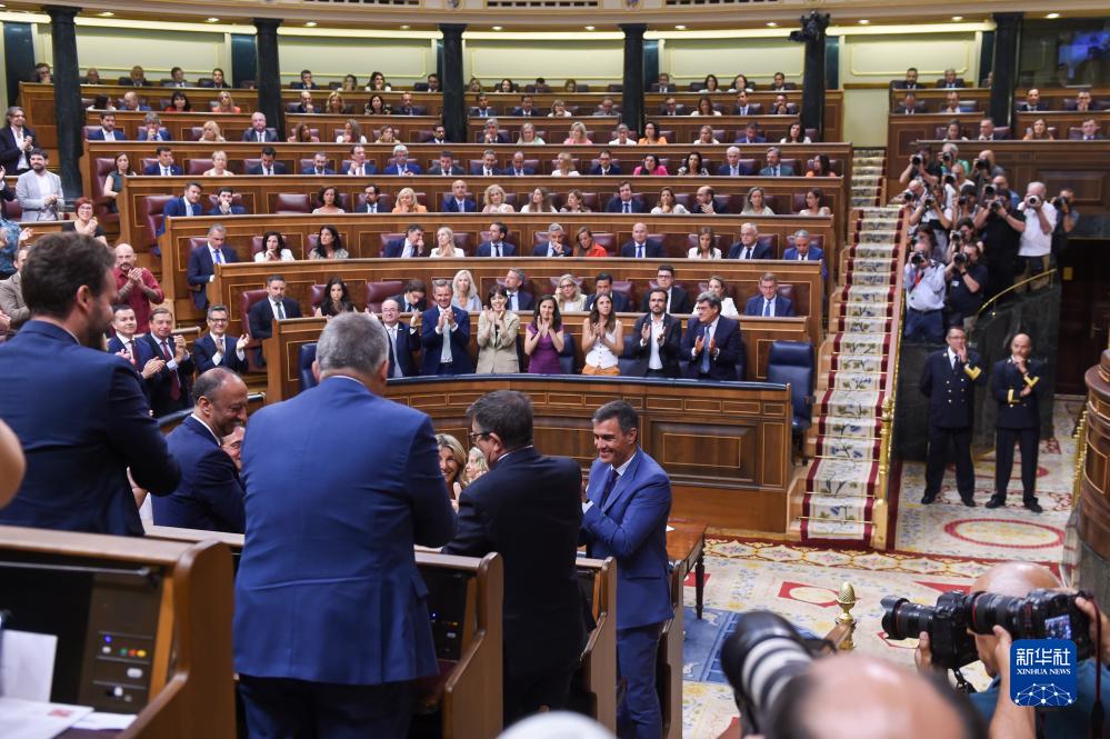 8月17日,西班牙代理首相佩德羅·桑切斯(中)在位于馬德里的議會(huì )進(jìn)行投票。