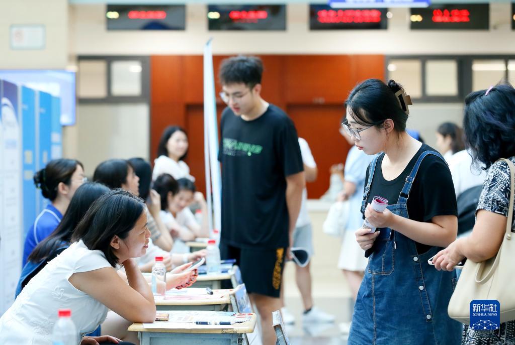 8月18日,大學(xué)生在招聘會(huì )上了解崗位信息。