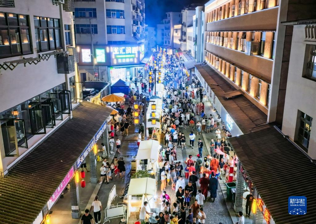 8月18日,在杭州市臨安區昌化鎮,“唐昌之夜”主題文化節正在舉行,吸引眾多游客游玩(無(wú)人機照片)。