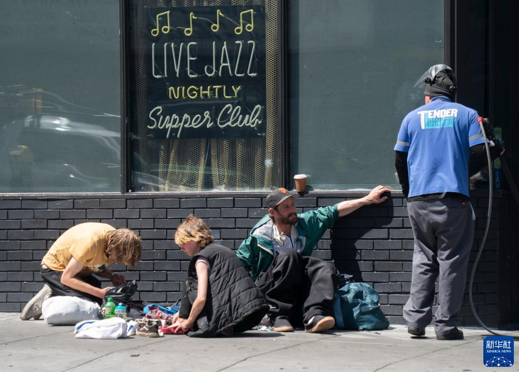 這是8月18日在美國加州舊金山市區的街道上拍攝的無(wú)家可歸者。