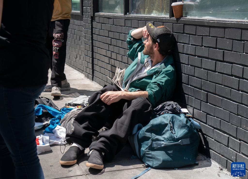 這是8月18日在美國加州舊金山市區的街道上拍攝的無(wú)家可歸者。