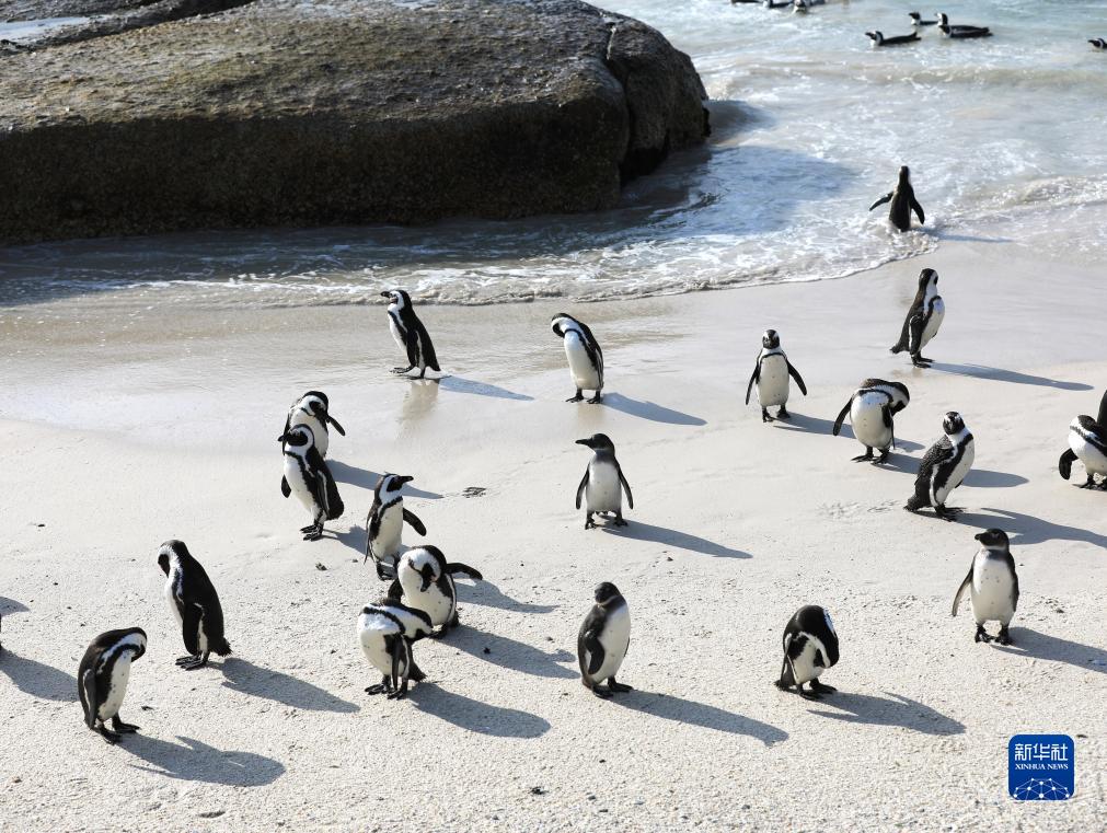 這是8月12日在南非西蒙鎮的博爾德斯海灘上拍攝的非洲企鵝。