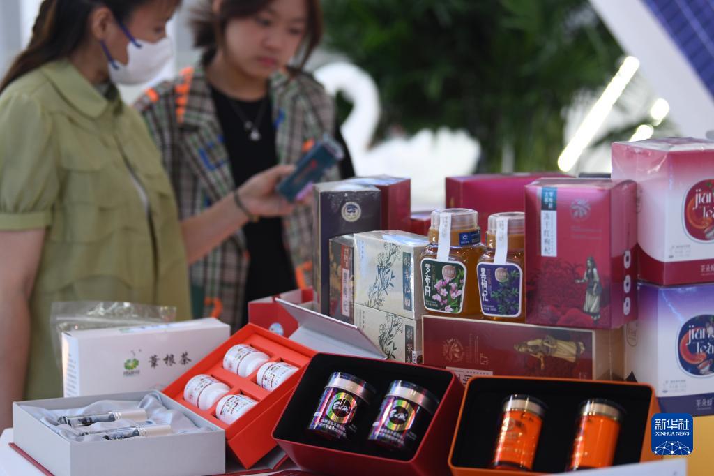 8月18日,在2023(中國)亞歐商品貿易博覽會(huì )上,市民在挑選產(chǎn)自新疆尉犁縣的羅布麻系列產(chǎn)品。