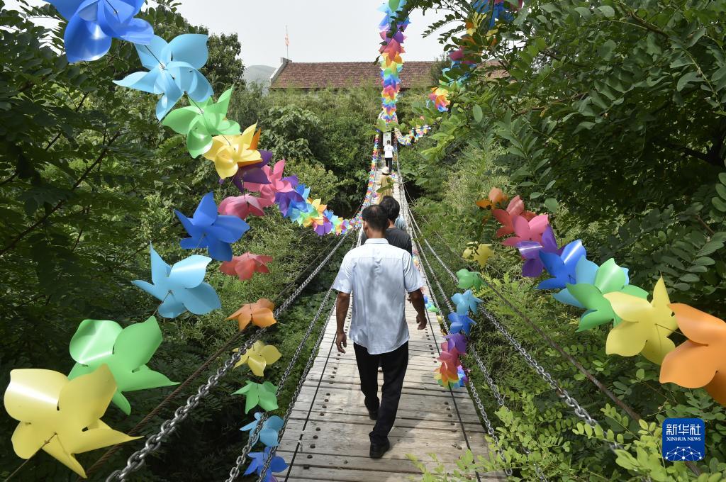 8月18日,游人在汝州市陵頭鎮王灣民俗村游覽。