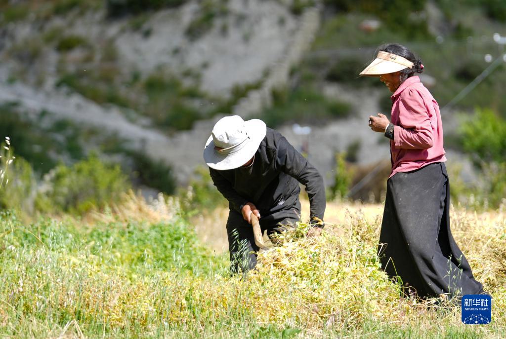 目前,西藏各地進(jìn)入秋收時(shí)節。西藏昌都市邊壩縣的農民抓緊收割青稞和牧草,確保顆粒歸倉。