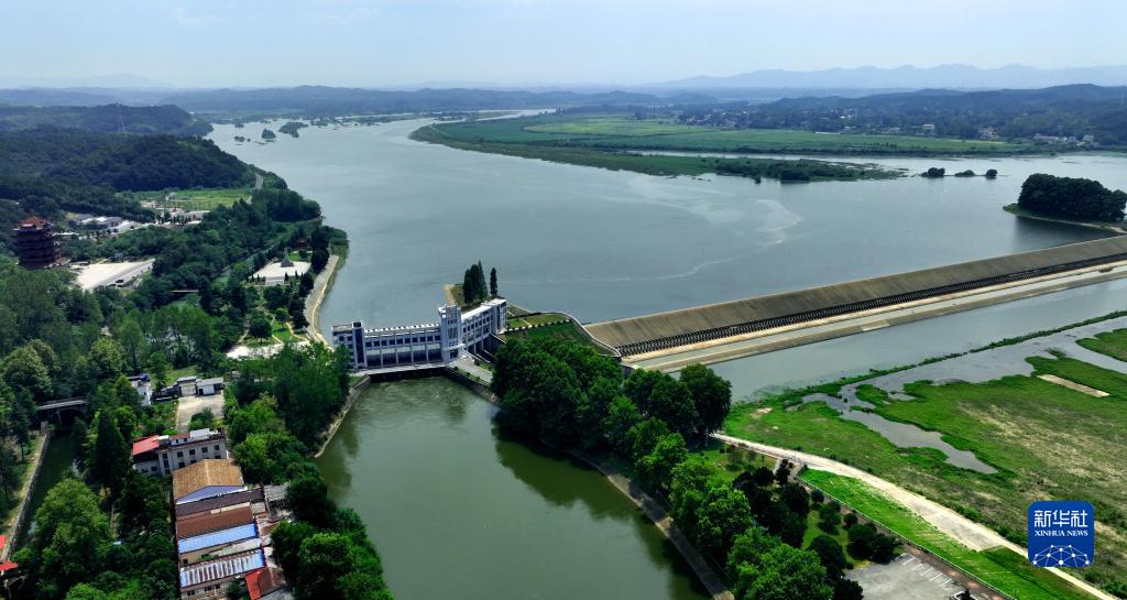 8月18日拍攝的位于安徽省六安市裕安區的淠河總干渠渠首橫排頭水利樞紐(無(wú)人機照片)。
