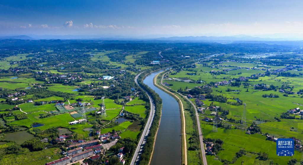 8月3日拍攝的位于安徽省六安市裕安區蘇埠鎮的淠河總干渠(無(wú)人機照片)。
