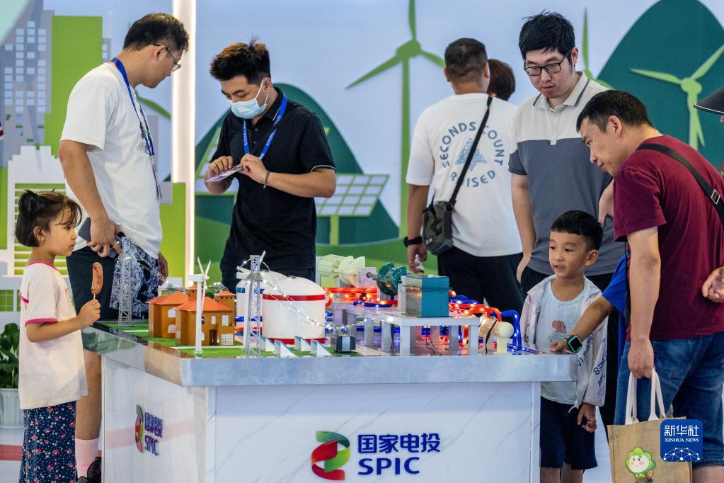 8月19日,在第七屆中國—南亞博覽會(huì )國家電投展區,家長(cháng)帶著(zhù)孩子參觀(guān)展覽。