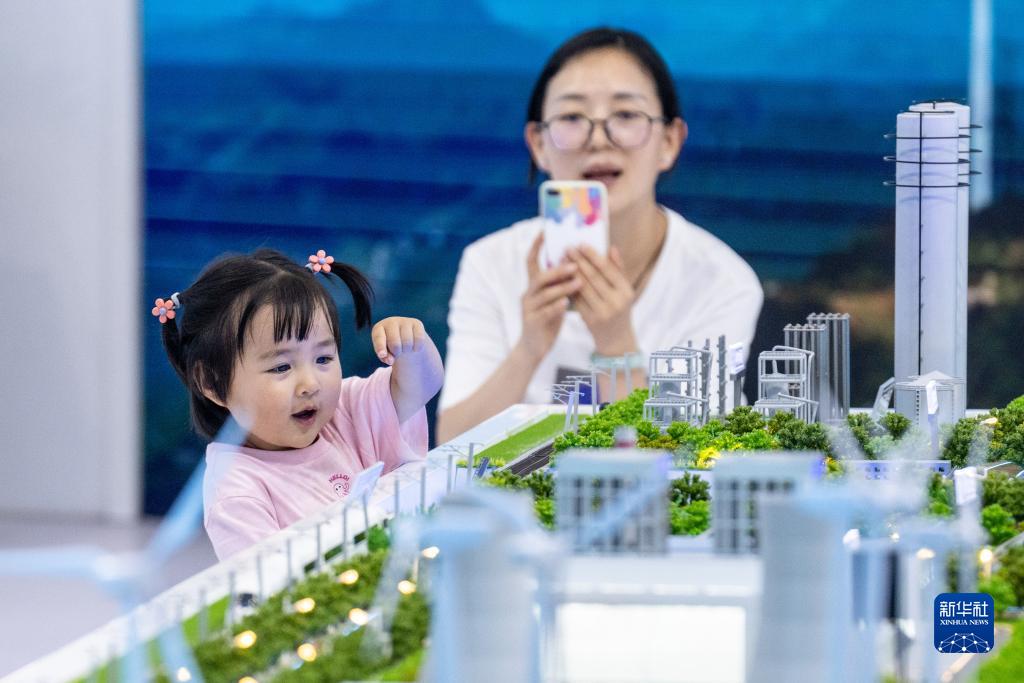 8月19日,在第七屆中國—南亞博覽會(huì )云南能投展區,一名家長(cháng)帶著(zhù)孩子參觀(guān)展覽。