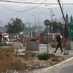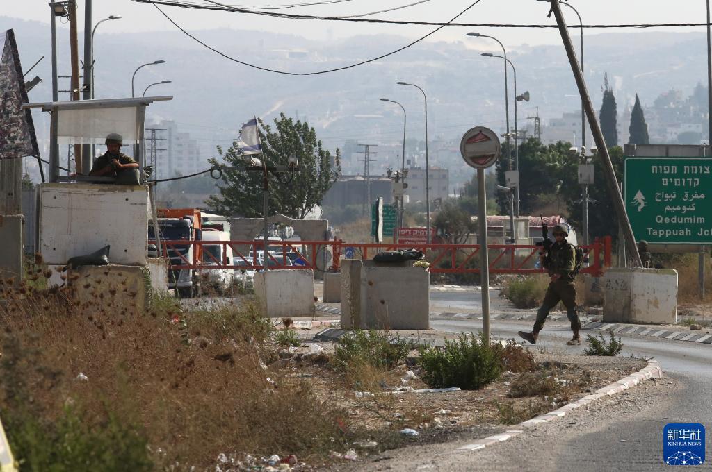 8月19日,在約旦河西岸城市納布盧斯以南的胡瓦拉鎮,以色列士兵在襲擊事件現場(chǎng)附近的一個(gè)檢查站執勤。