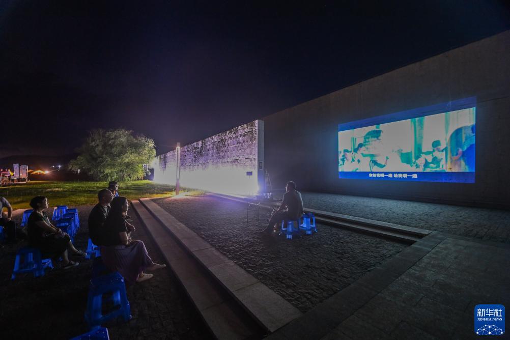 8月19日,游客在三都漁村觀(guān)看露天電影。